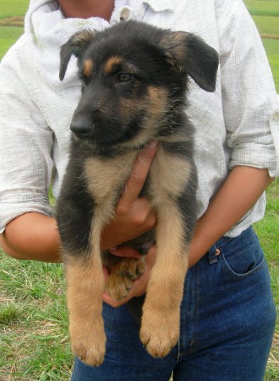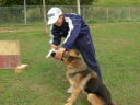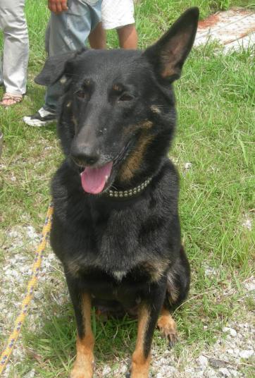 服従訓練から警察犬めざして高等訓練までマスターします。当訓練所所属マイケルの兄弟です。(今日の訓練所7月12日) |