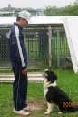 ひっぱり、飛びつきを改善し、楽しい散歩ができるよう、服従訓練に励みます。 |