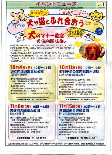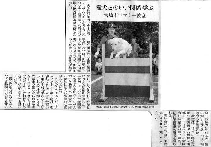 第4回目の(財)宮崎県公園協会主催「犬のマナー教室」が宮崎県総合運動公園で行われました。