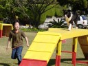 他の犬とも仲良くできるようしつけ訓練を勉強に来ました。 |