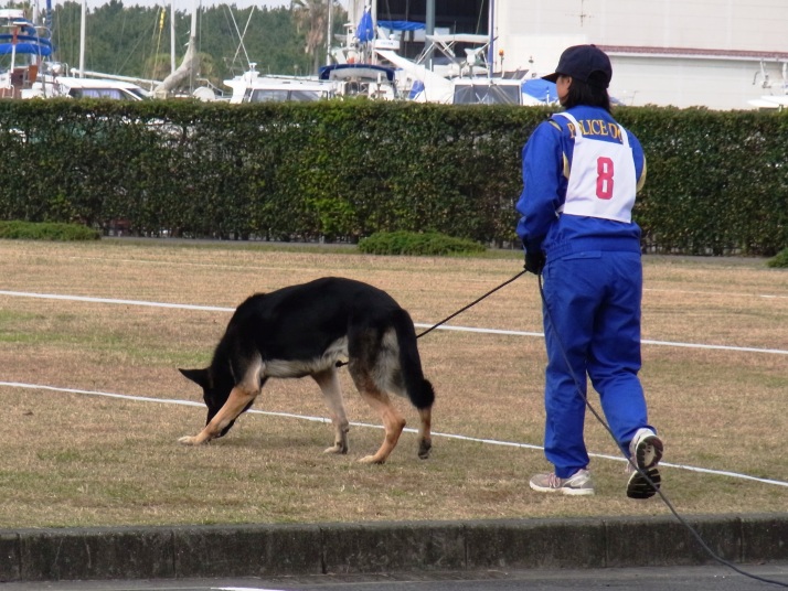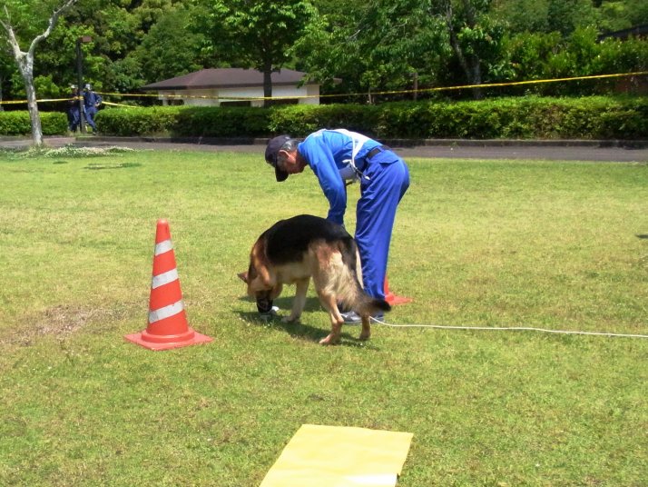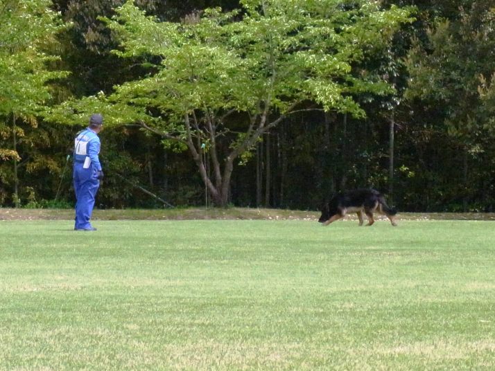 105頭のエントリーがあり、足跡追及2部門、臭気選別2部門、警戒、服従8部門に分かれ競いました。