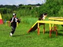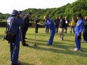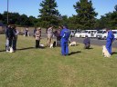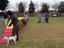 アジリティを体験していただいたり、全員で脚側行進などを行いました。
