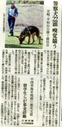 10月に取材を受けた宮崎大学付属小学生押川さんによる当訓練所の記事が 11月13日(土)の宮崎日日新聞第12面に掲載されました。