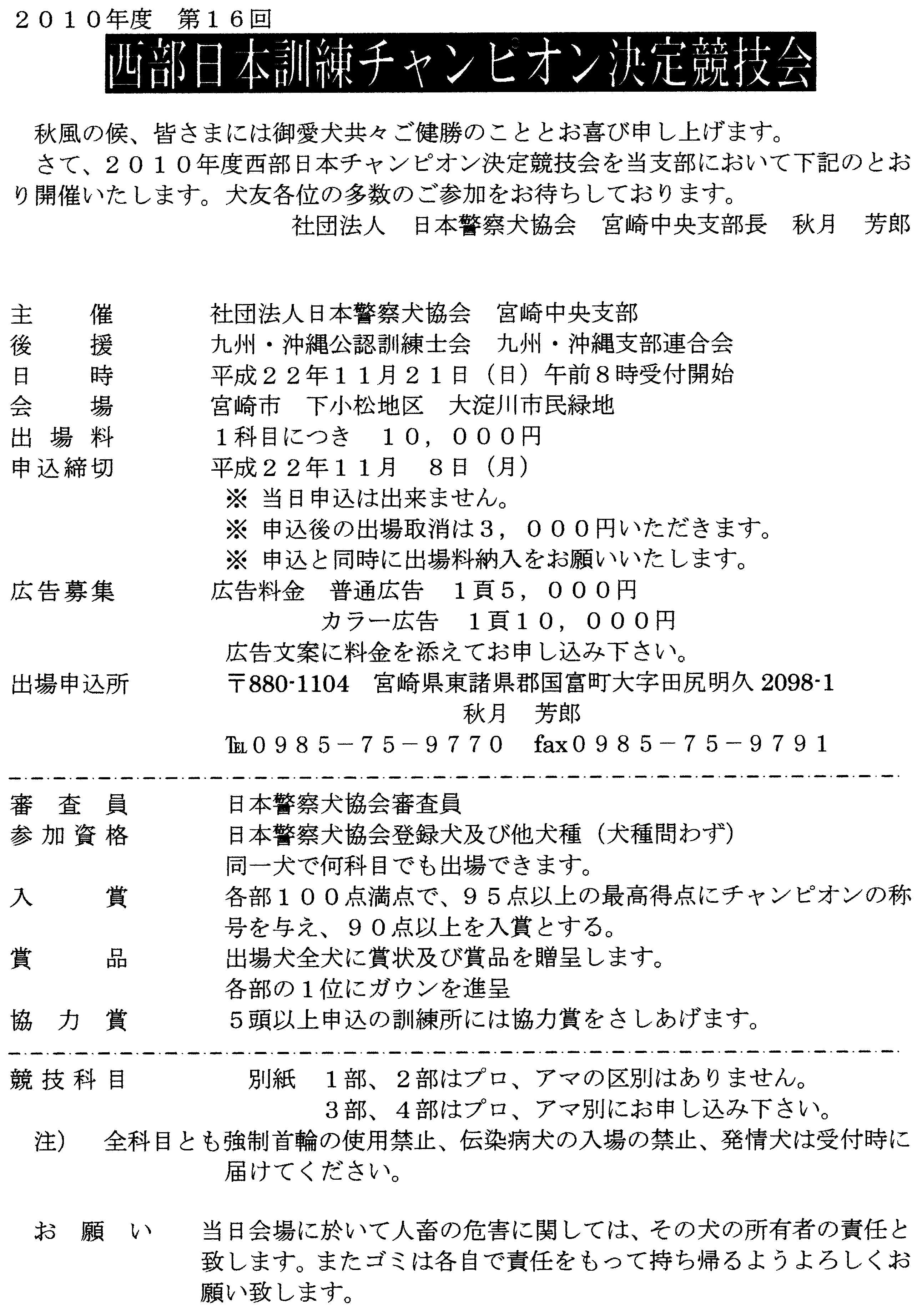| 西部日本訓練チャンピオン決定競技会のお知らせ |