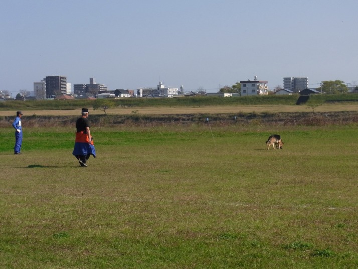 初日は服従、臭気選別、3日目は足跡追及が試験されました。試験の結果は発表され次第、ご報告します。 |