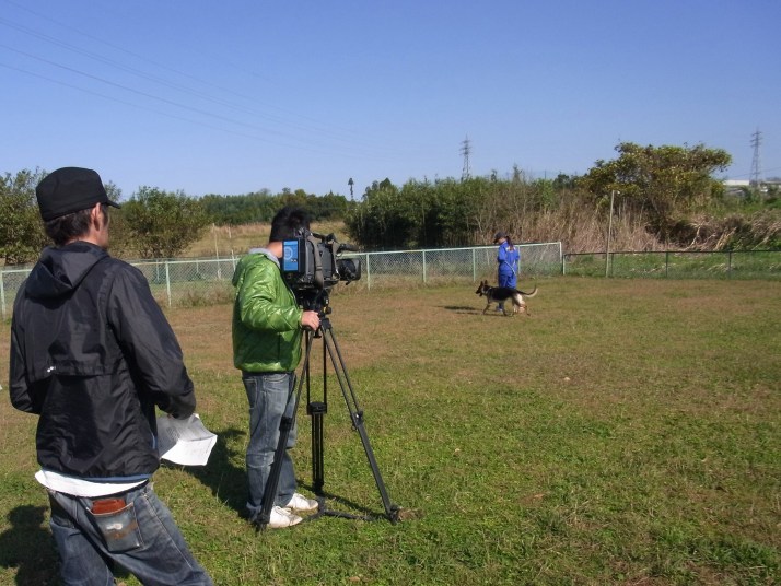撮影は3時間ほどかけて行われ、服従訓練から追及、選別の様子まで撮影。佐々木六華アナウンサーも怖々ながらもシェパード犬で脚側行進を行いました。