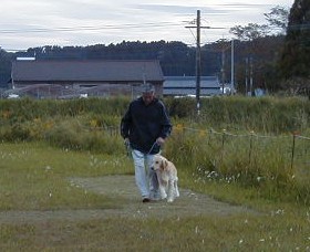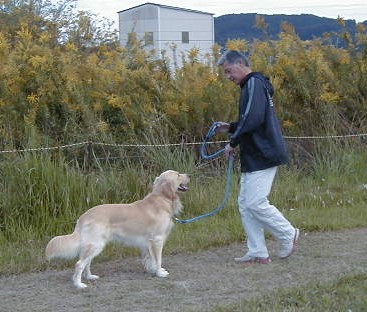 ご主人の歩くスピードにあわせます。
