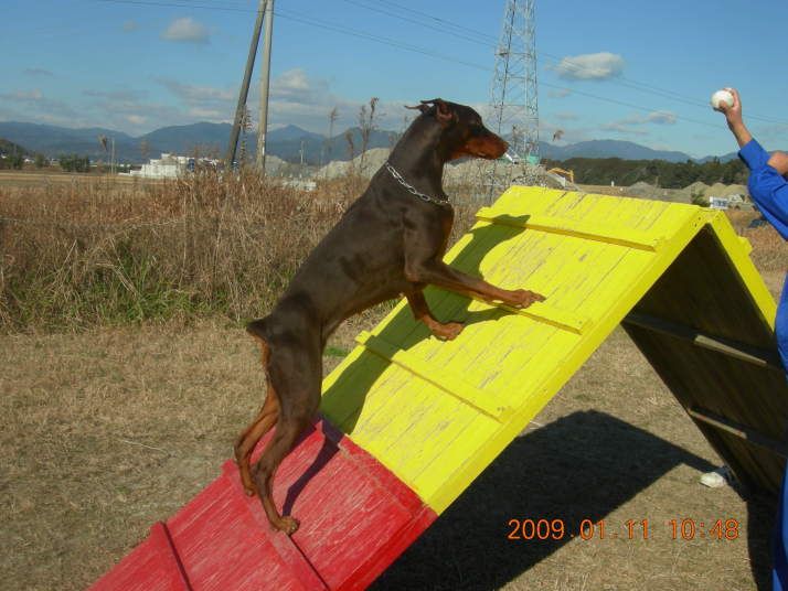 細川ジュディ脚側訓練 橋口りん太郎停座訓練