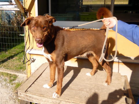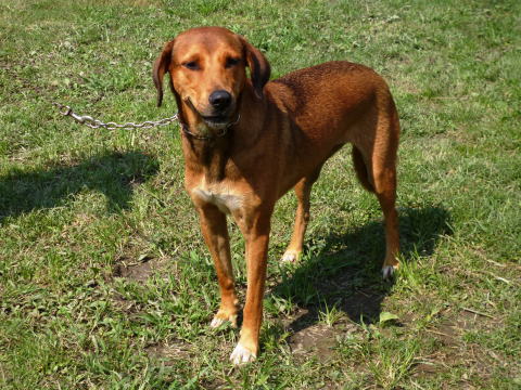 他の犬に対して吠えたり向かっていったりする癖を克服するために入所しました。みんなに優しく接することができるよう、基本訓練を学んでいます。 |