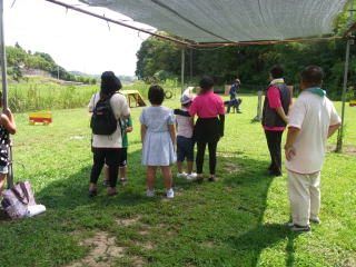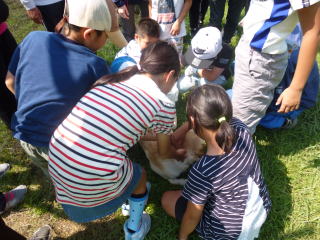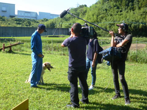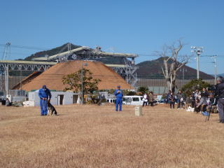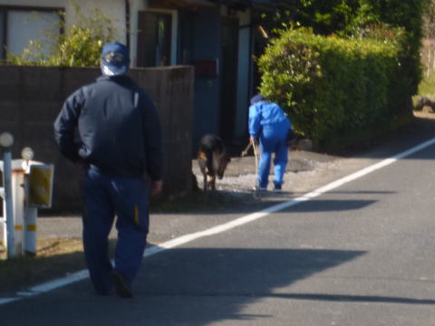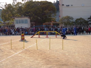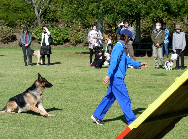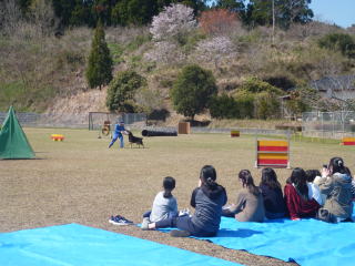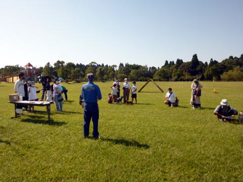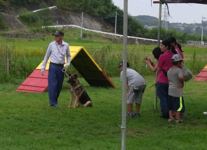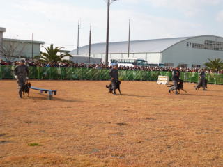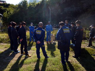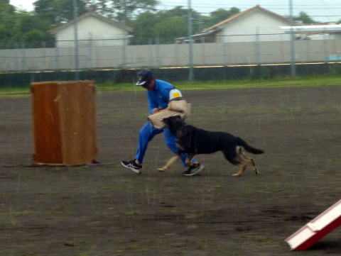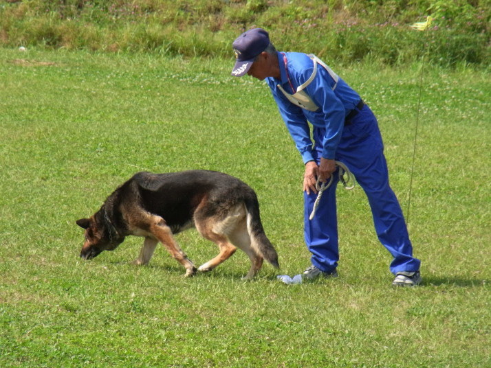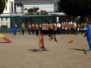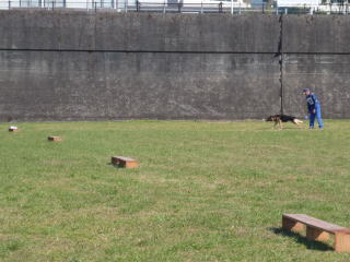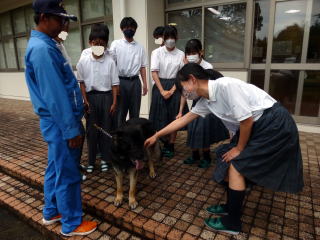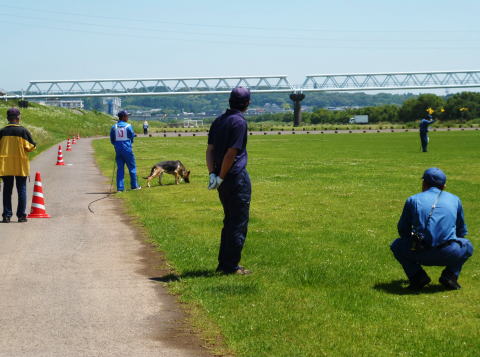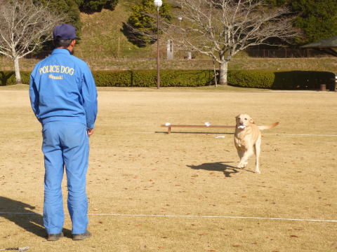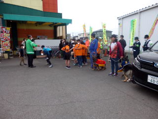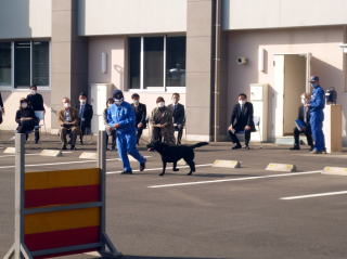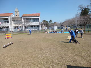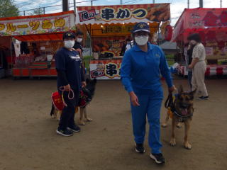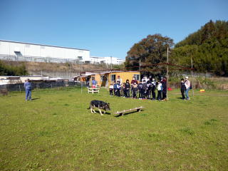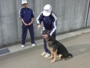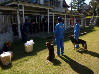 暖かい陽気のもと訓練士と警察犬の役割などを実技を通してお伝えしました。
