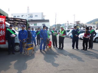 4月5日(金)国富町役場駐車場にて交通安全運動出発式が行われました。国富町・綾町・宮崎市高岡町の東諸県郡交通安全協会、高岡警察署、国富町役場等の約200名が参加。国富町長、高岡警察署長、国富町議会議長のあいさつのあと、警察犬の訓練実演を披露しました。