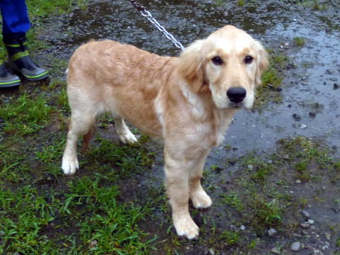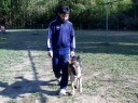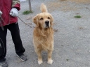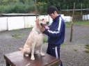 体が大きく成長し、引っ張りや飛びつきの力が強くなってきました。安全に歩けるよう、服従訓練でしっかり勉強します。 |