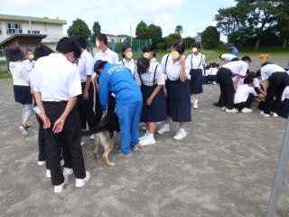・1時間目(体育館):県警鑑識課による指紋採取などの講義と、訓練士の仕事紹介
