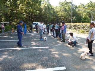 家族との散歩などが楽しくできるようしつけ訓練を勉強します。 |