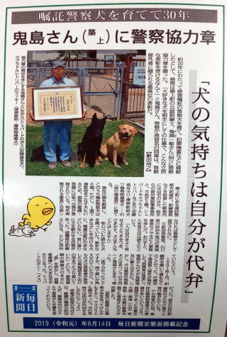 当訓練所からはシェパード4頭が任命されました。1年間嘱託警察犬として活躍できるようがんばっていきます。