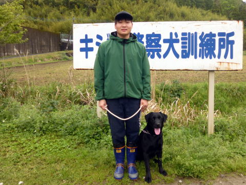 佐藤弘幸さんはドッグトレーナー専攻の1年生。将来、警察犬訓練士をめざす希望を持って研修に励みました。