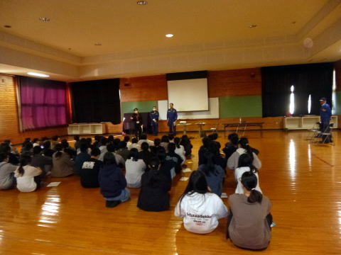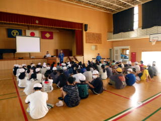6年生102名を対象に、警察犬や鑑識の仕事について2時間にわたり紹介しました。